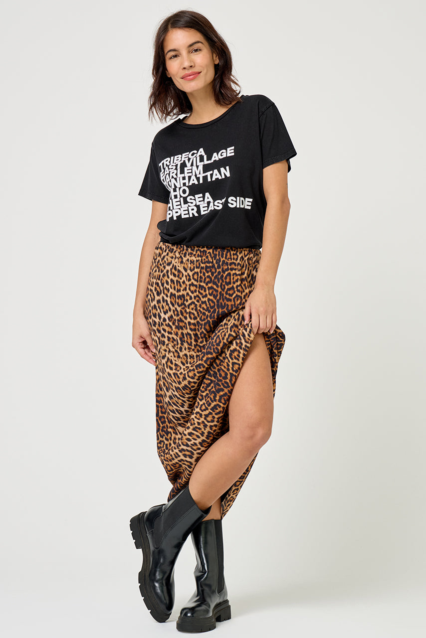 Notre mannequin porte cette jupe en taille S que vous pouvez facilement associer avec un de nos pulls et tee-shirts.