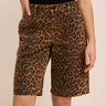 - Short en toile denim 100% coton à imprimé léopard