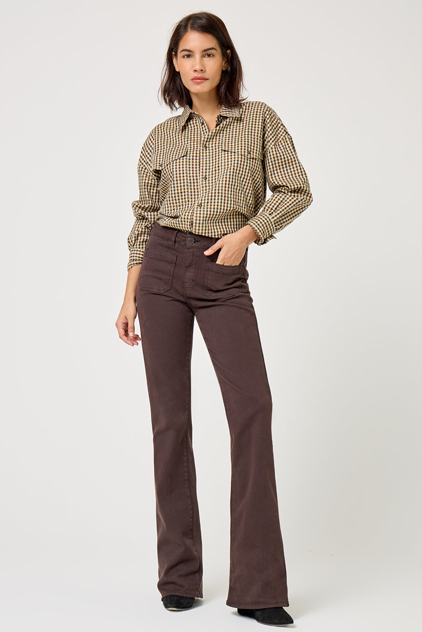 - Pantalon femme taille haute en coton élasthanne (ref: 100)