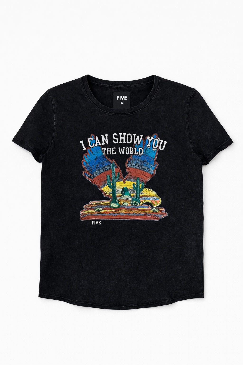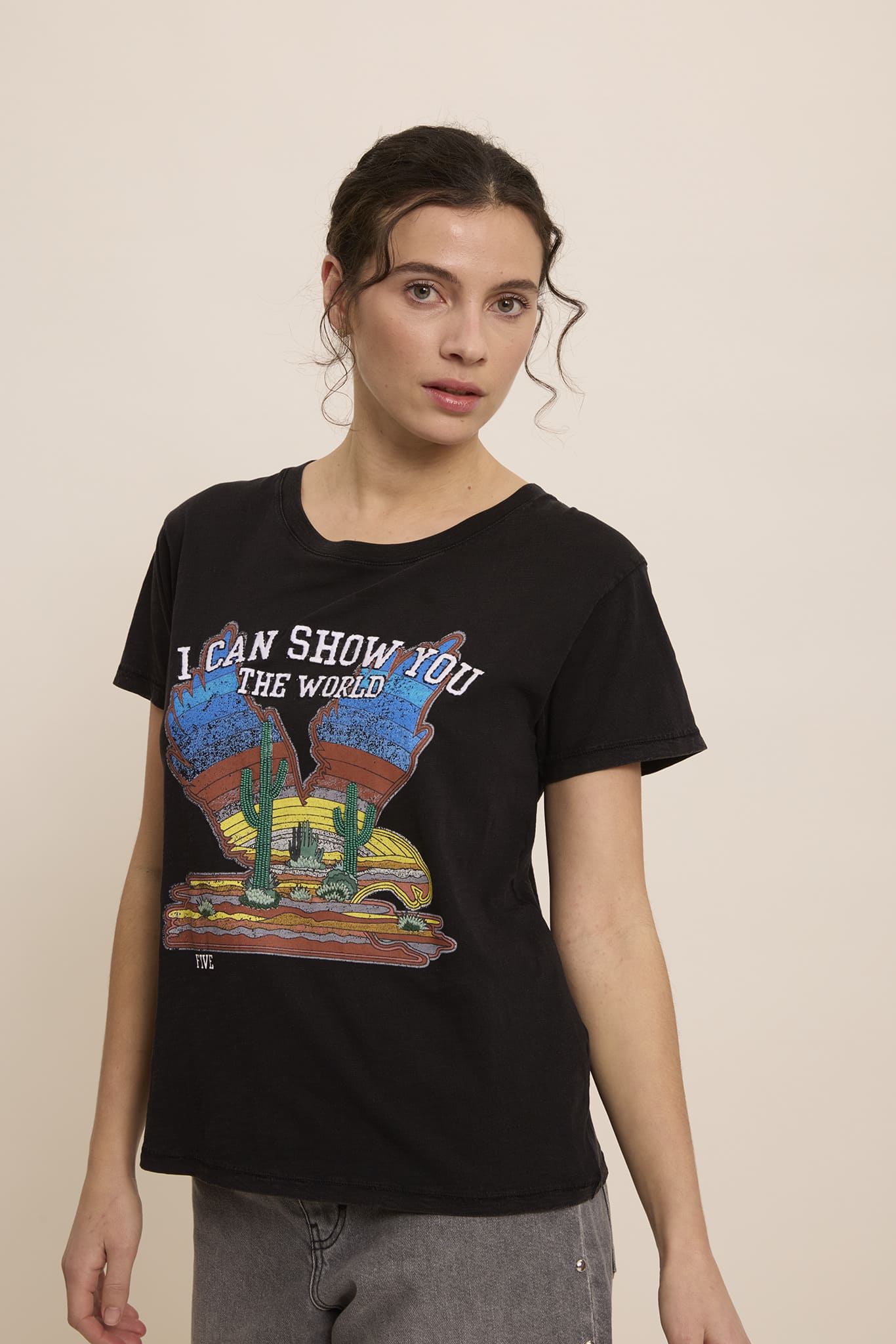 Notre mannequin porte ce tee-shirt en taille S que vous pouvez facilement associer avec une de nos jupes ou de nos jeans.