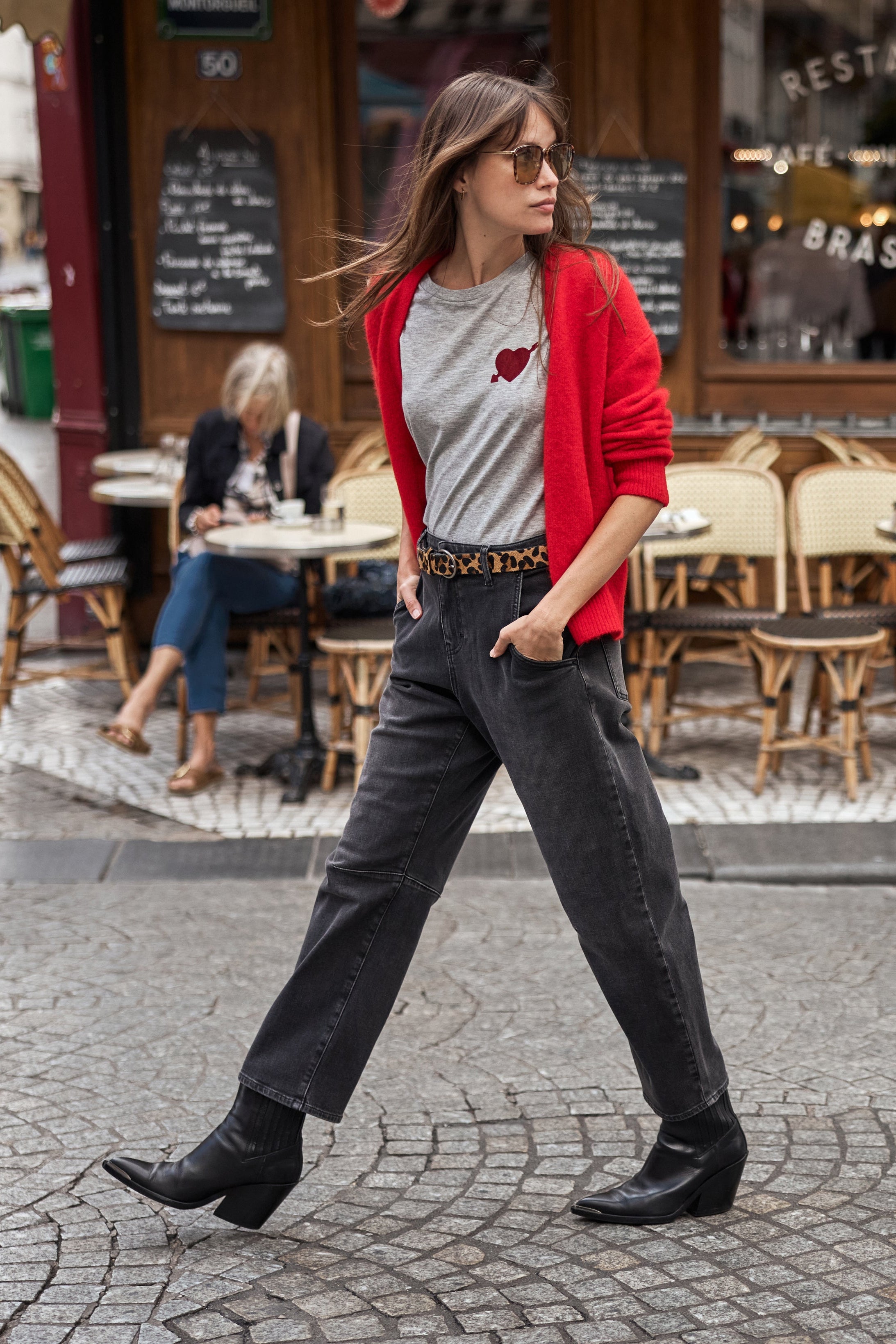 Our model is wearing these jeans in size 27 which you can easily pair with one of our short-sleeved t-shirts and shirts .