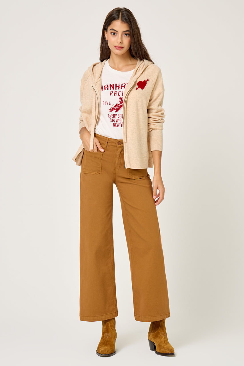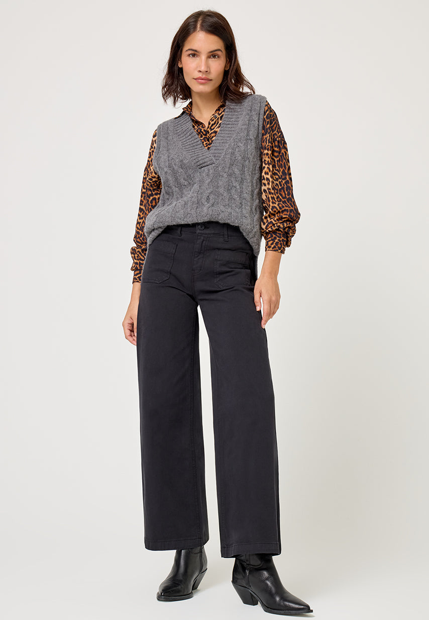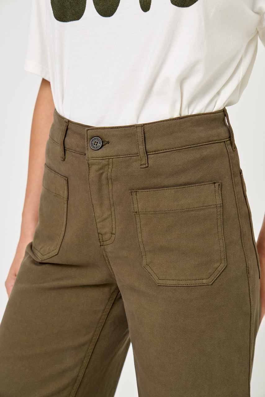 - Closure with a FIVE branded button and a hidden zip under the flap
