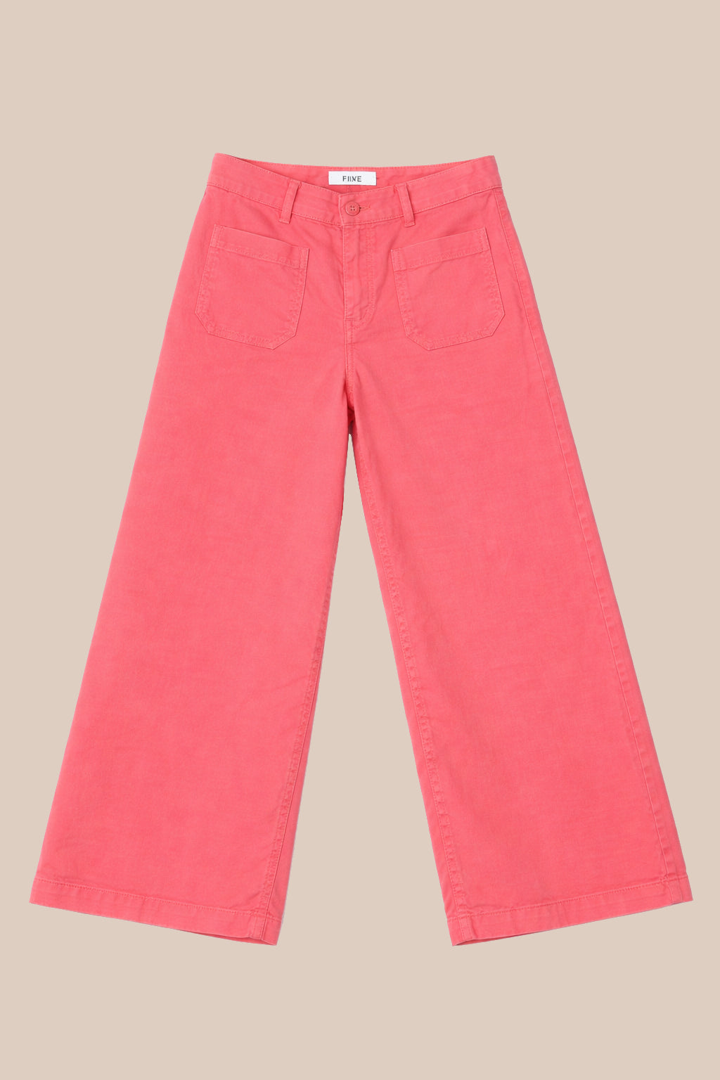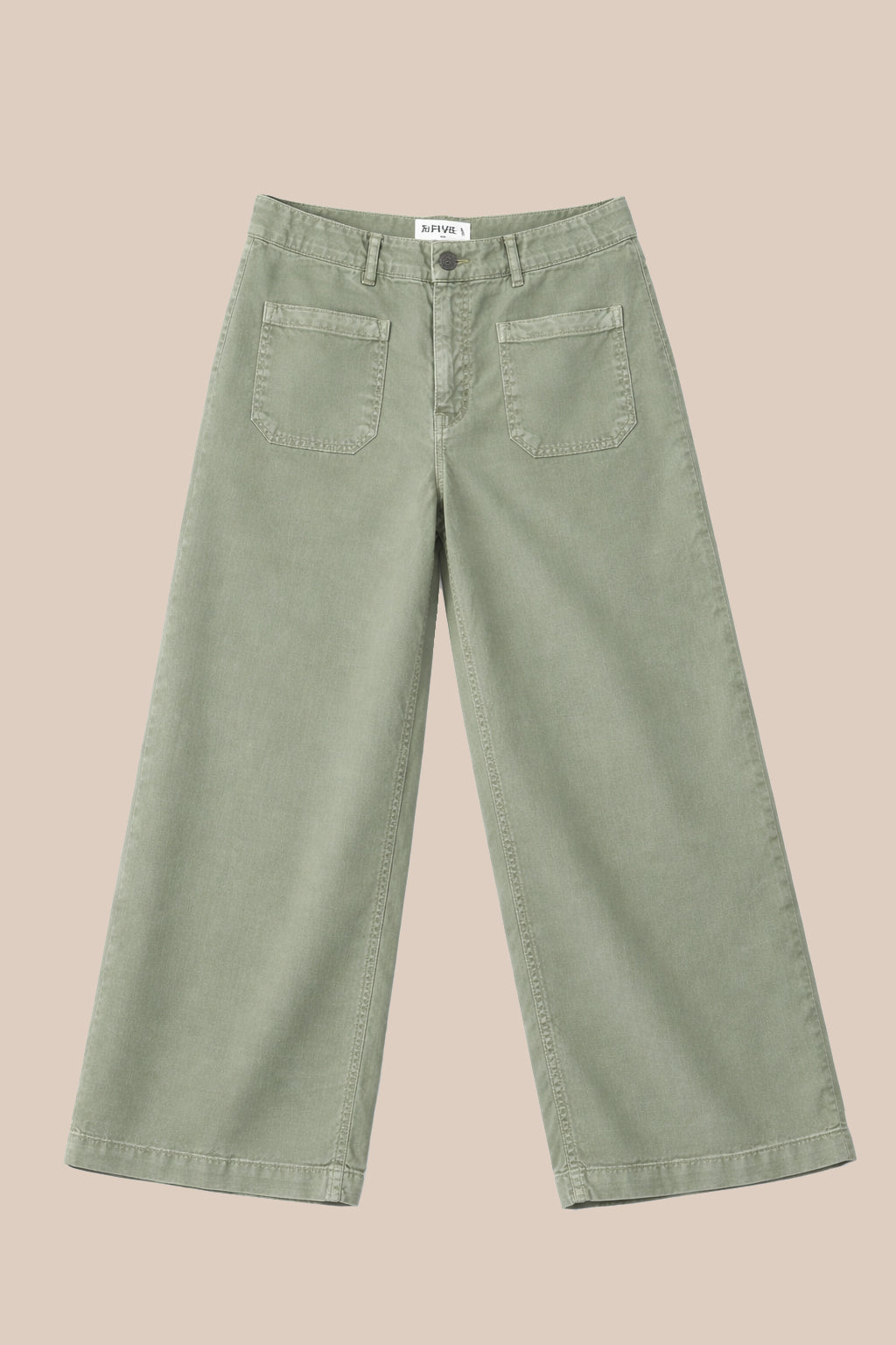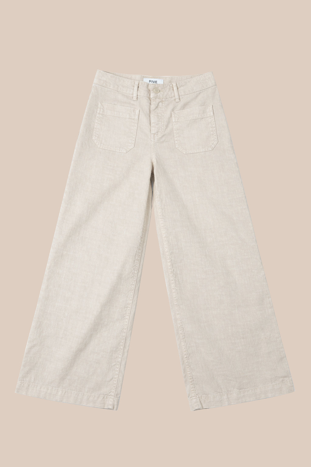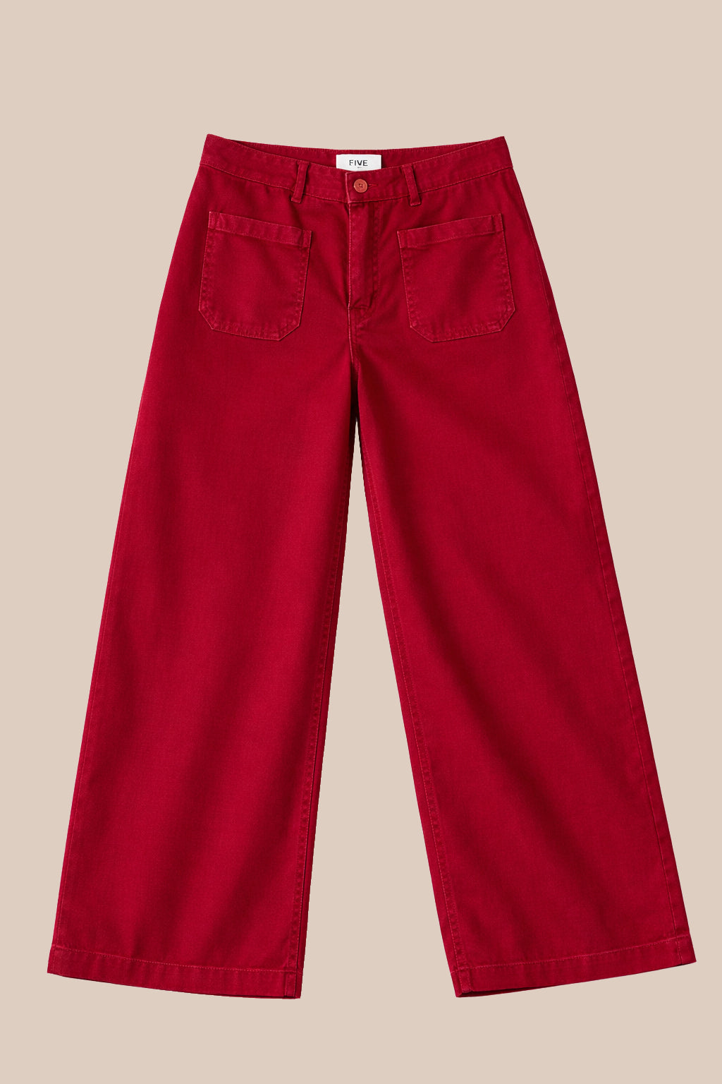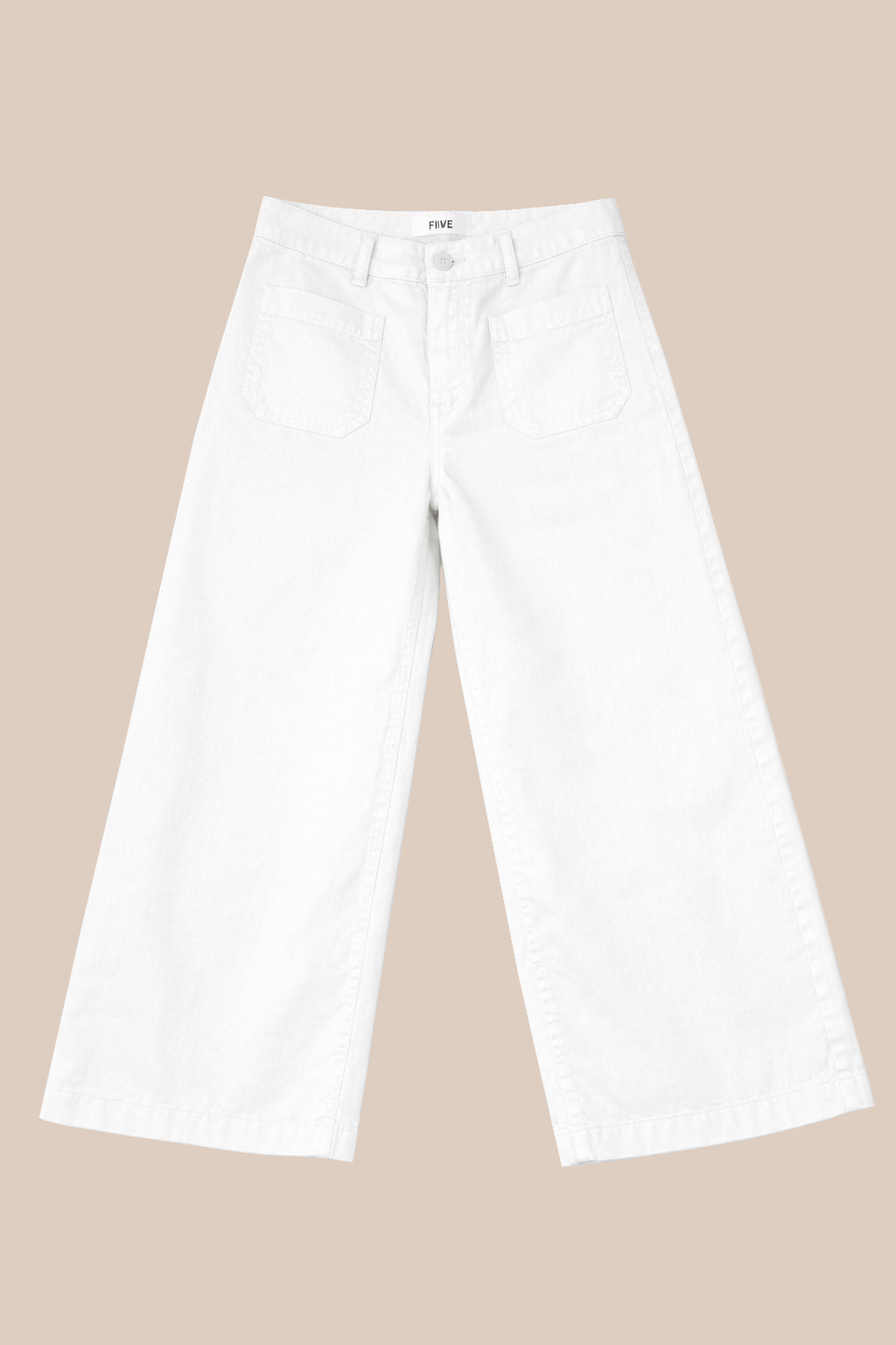 - Fastens with a FIVE branded button and a zip concealed under the flap