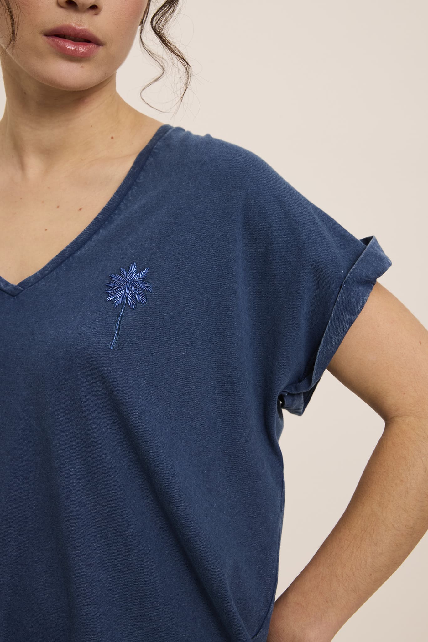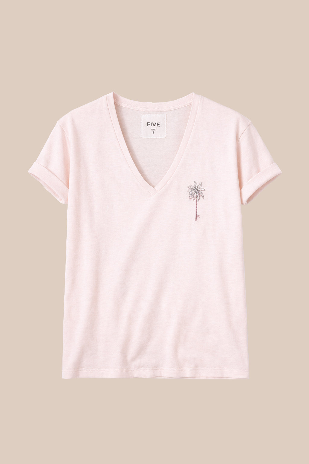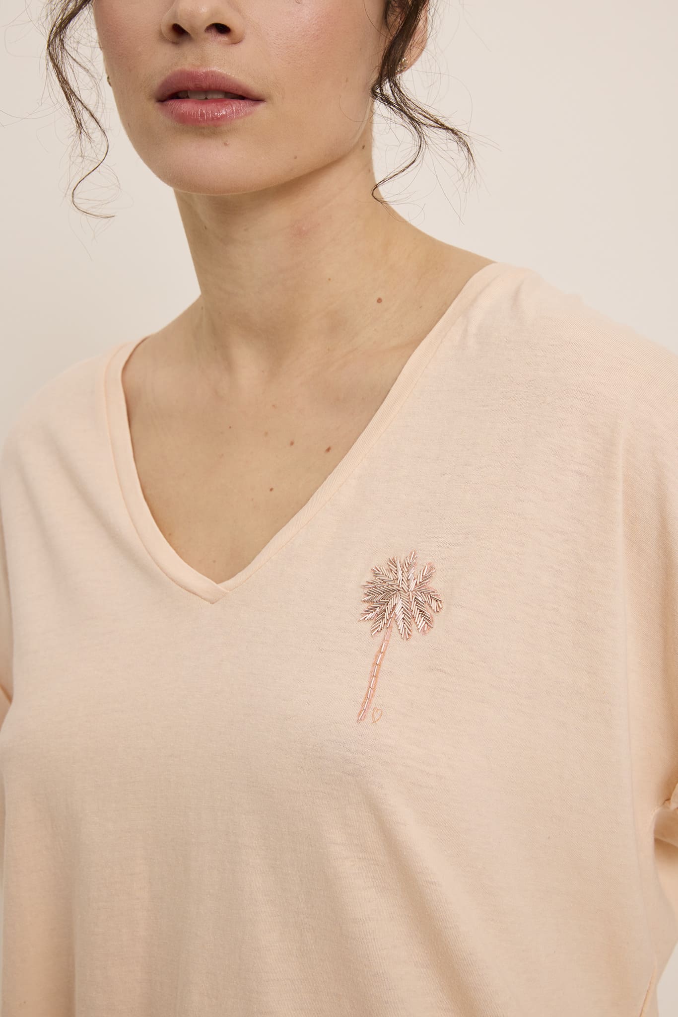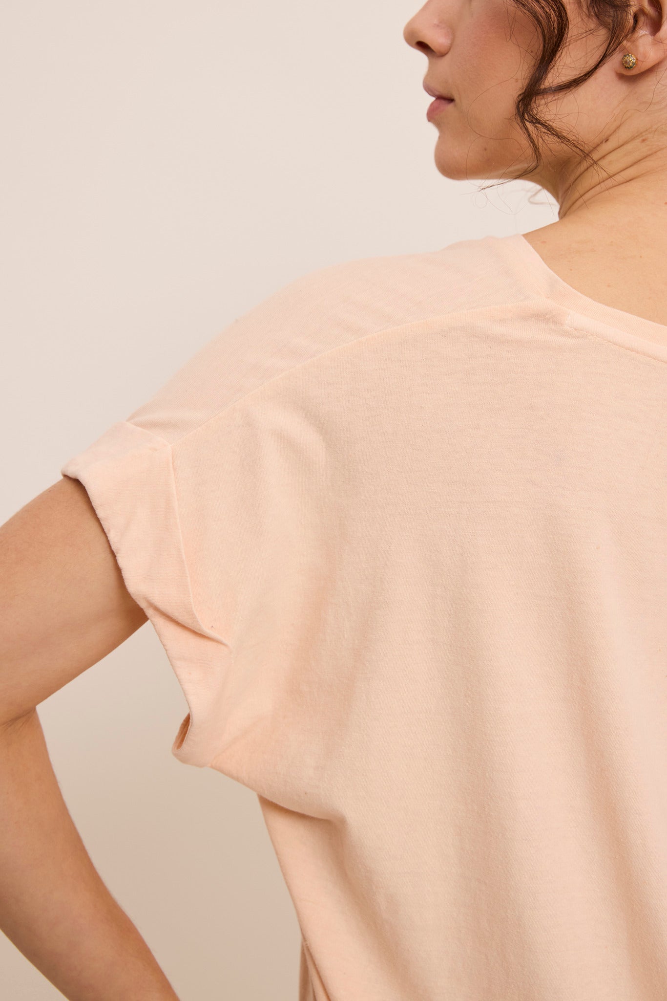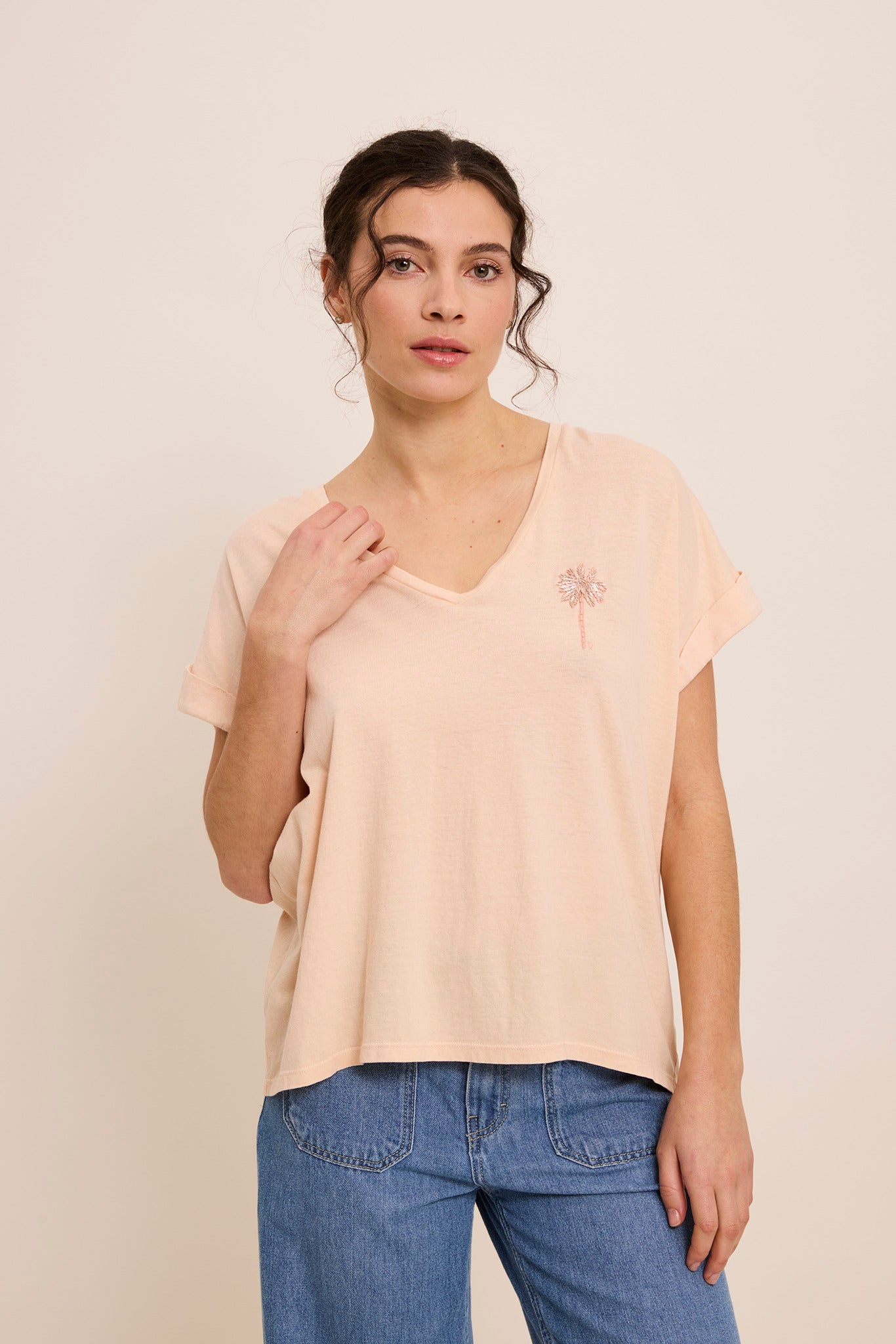 Our model is wearing this t-shirt in size S which you can easily pair with one of our skirts or jeans .