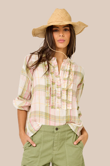 Blusa de cuadros Madras con pechera