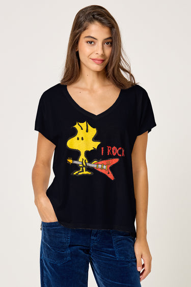 Nuestra modelo lleva esta camiseta en talla S, que puedes combinar fácilmente con uno de nuestros pantalones .