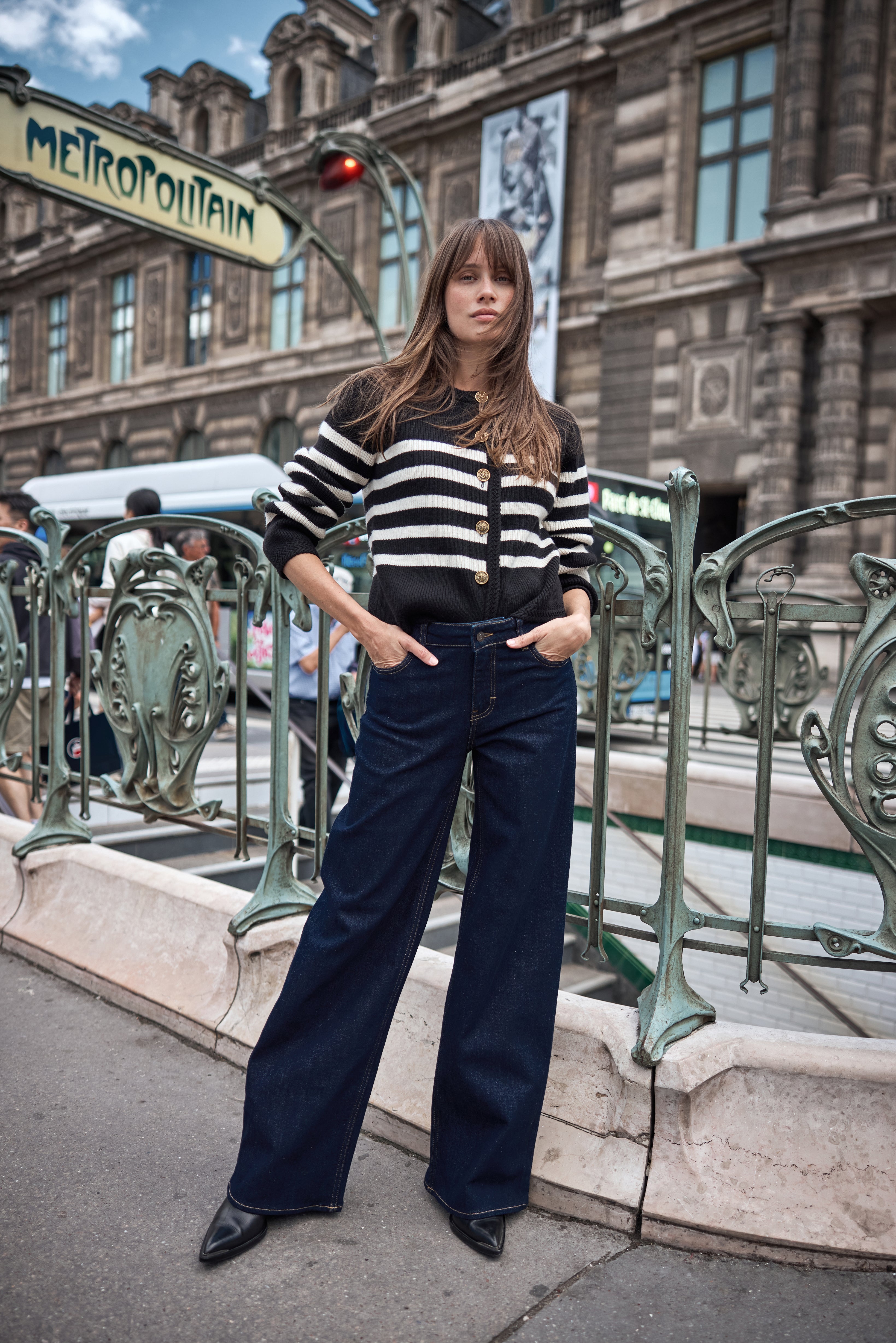 Notre mannequin porte ce jeans en taille 27 que vous pouvez facilement associer avec un de nos tee-shirts manche courtes et vestes.