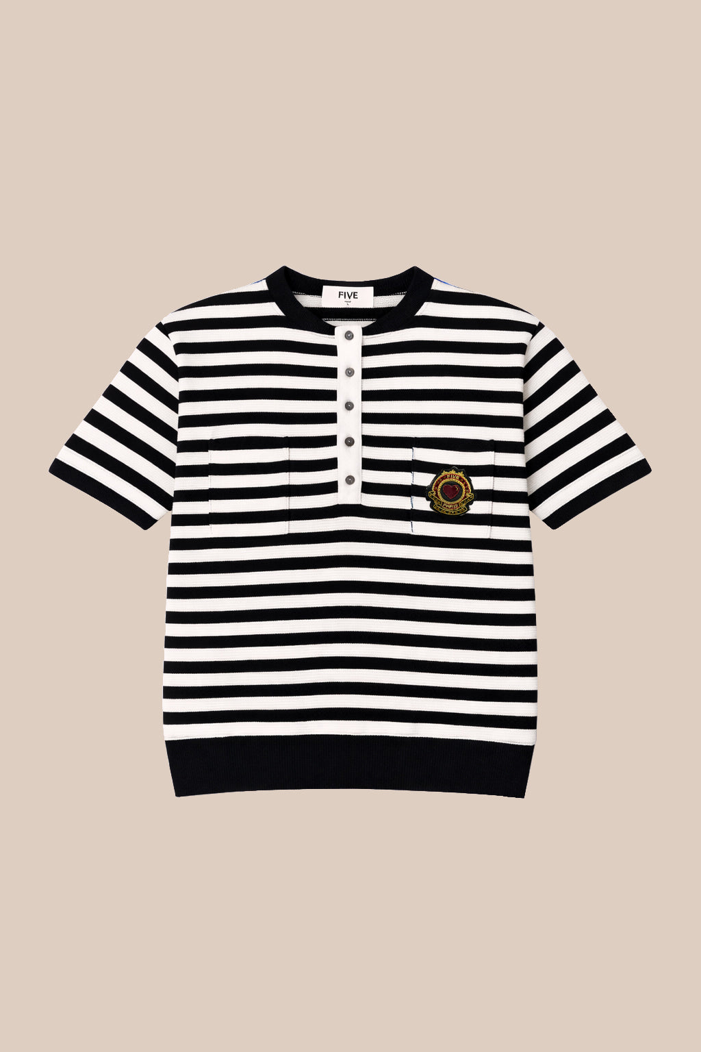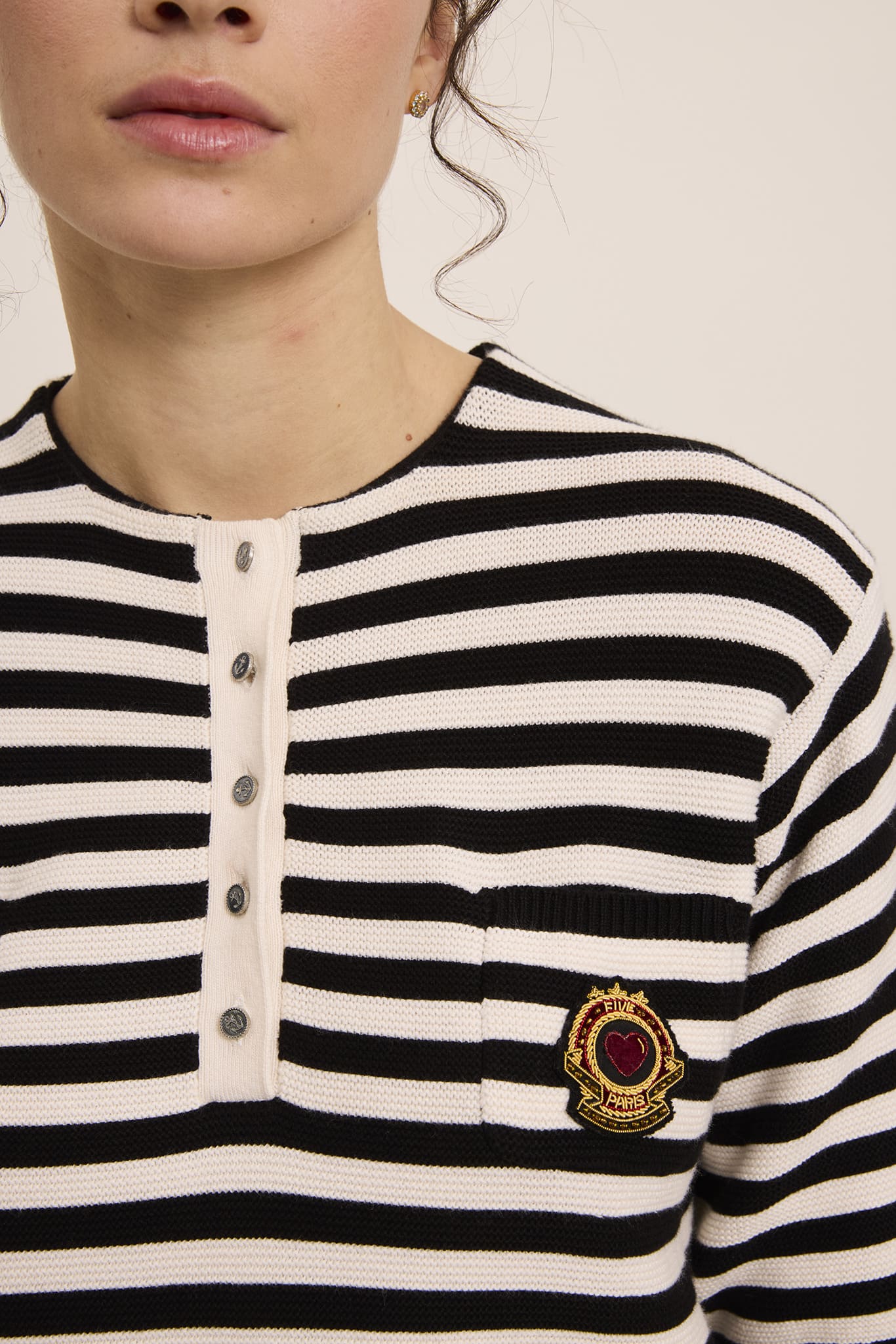 - Broderie dorée "Five Paris" à la poitrine